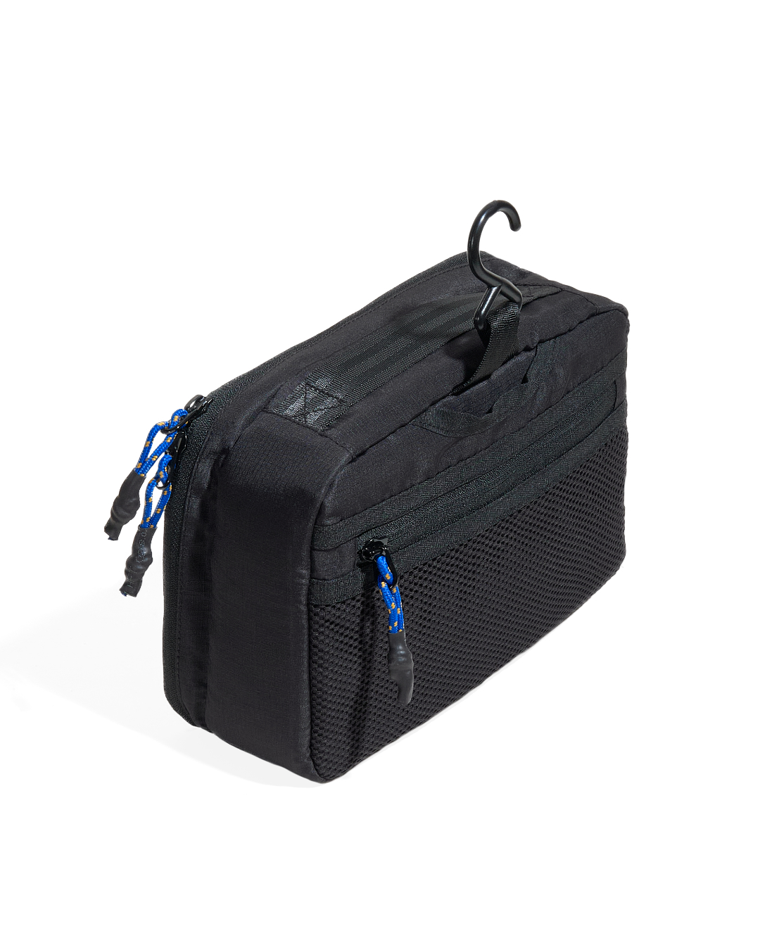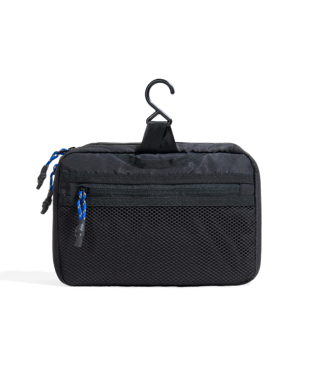 Additional Features: One front pocket with zipper closure, One back mesh pocket with zipper closure, Two internal mesh pockets, Grab handle, Plastic hook for hanging kit